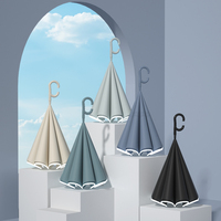 Fabricación China Nuevo diseño de moda Manos libres C Mango Inteligente Doble capa Pequeño paraguas de lluvia invertido